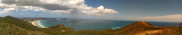 hier treffen die tasmanische see und der pazifik aufeinander, außerdem ist dies ein heiliger ort für die maori, es gibt einen baum auf einer kleinen insel, durch den wandern die seelen in die unterwelt
