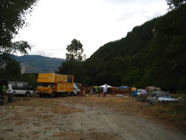 das chai zelt und ein paar autos am “zeltplatz” des festivals