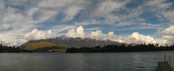 hier nochmal die remarkables und mein lieblingsberg in der sonne rechts von wasser umsäumt, kanpp 2000m hoch, die remarkables sogar noch höher