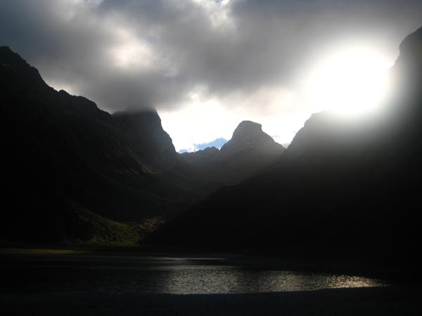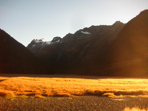 erstmal von qtown zum start trampen, das dauerte erstmal, die gegend um glenorchy ist aber definitiv was fürs auge! berge soweit das auge reicht, schneebedeckte gipfel und immer rechts von einem der lake wakatipu. lisa ist natürlich mit dabei und da wir recht spät dran sind, kehren wir direkt auf den ersten zeltplatz ein…