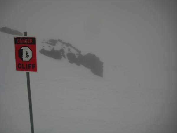 in der tat bin ich dann auch noch ein stück durch den schnee gestapft, keine zivilisation weit und breit, keine snowboarder, ski fahrer dafür eine wandergruppe weit unten…plötzlich zogen innerhalb weniger minuten wolken auf so das die sichtweite auf 20m eingeschränkt wurde – whiteout!