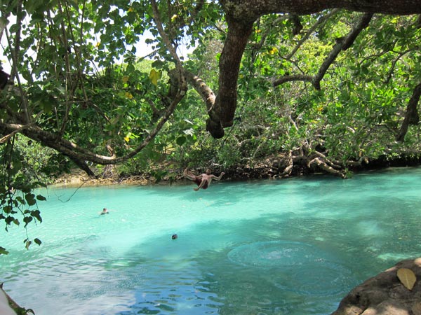 am nächsten tag steht die inselrundfahrt auf m programm, wir sehen kokosnuss plantagen en masse, machen stop bei der blue lagoon, einer frischwasserquelle – zum baden 😉