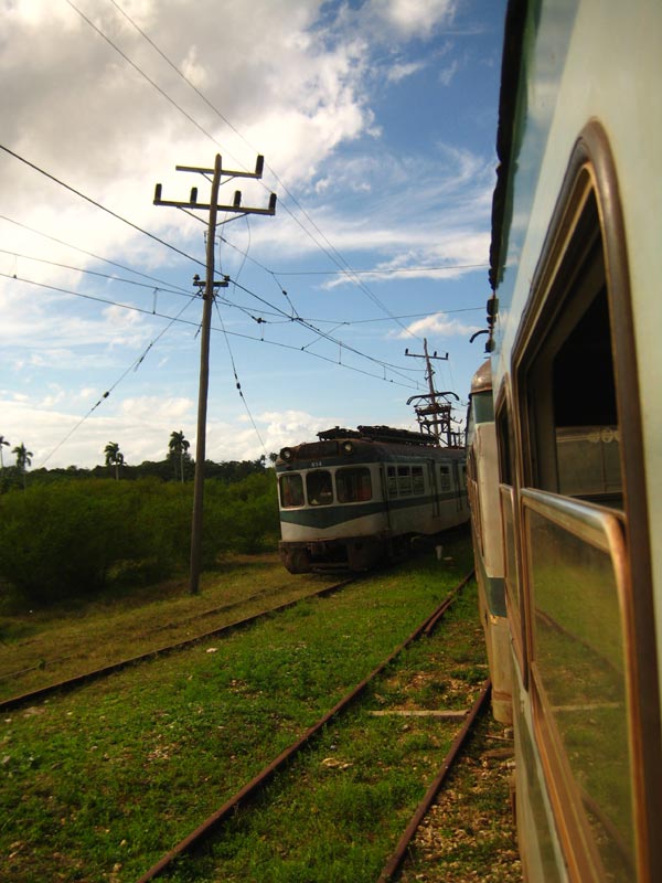 am ersten feiertag gings mit der einzigen elekrischen bahn nach havana, auf raten unseres kontaktes in der hauptstadt sollten wir die züge meiden, egal wir wollen das erlebniss und das wars in der tat, holzklasse, 2 wagen, hält an jedem kuhdorf…für ne strecke von 100km haben wir 4 std gebraucht, ein paar probleme auf dem weg inbegriffen.