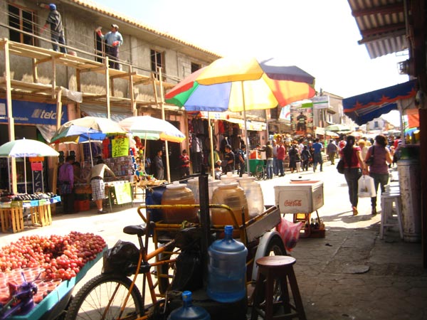 der mezcal auch, für 20 pesos gibts ein randvolles shotglass, danach gabs posh ne lokale alkoholische spezialität – maisschnaps, nach den 2 getränken und den knabbereien gehts einem dann schon richtig jut 😉