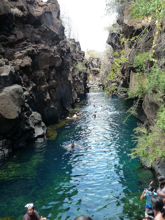 die obere schicht süsswasser, unten salzwasser aus dem ozean, glass klar, super schnorchel stelle, wirkt n bisschen bedrohlich da so eng aber schön anzuschaun, andere verrückte springen von der kante oben hinab, gut 20 meter – respect!