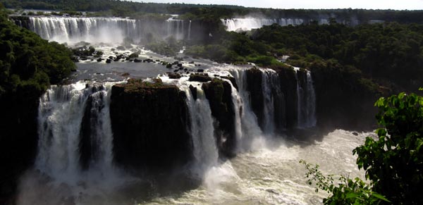 idyllisch gelegen im jungle bestehen die fälle aus 20 großen und über 200 kleinen die sich bis zu 90 m in die tiefe stürzen, das ganze auf 3 km länge verteilt, unmengen von wassermassen fließen das gestein herab. der national park befindet sich hauptsächlich auf argentienischer seite, jedoch hat auch brasilien einen anteil, von hier kann man den überblick bekommen, ich war natürlich auf beiden seiten…