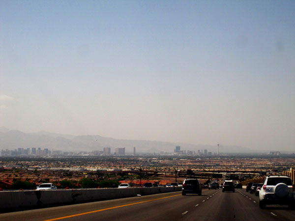 einen abend und einen morgen brauch ich um mein ziel zu erreichen, die erste nacht im auto war ok, ich muss mich aber noch ein wenig daran gewöhnen mit extrem wenig platz auszukommen, aber jetzt erstmal luxus pur, vegas here i come – aber mit gemischten gefühlen und da tut sich kurz nach boulder city schon die idiotie mitten in der wüste auf