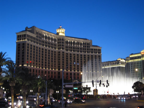 die show draußen ist auch nicht zu verachten, prunkvolle wasserspiele vor dem bellagio, jede halbe stunde werden mit unmengen energie, riesige wassermassen spielrisch durch die luft geschossen, beeindruckend und verschwenderisch zu gleich – wir befinden uns mitten in der wüste, aber egal, das reale leben ist hier ja ein wenig ausgeblendet