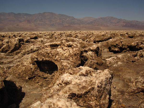 entlang des tals gibt es mehrere unterschiedliche sehenswürdigkeiten, von sanddünen über verschiedenfarbige berge, weite ebenen und salzformationen, wie hier im sog. devils golf course