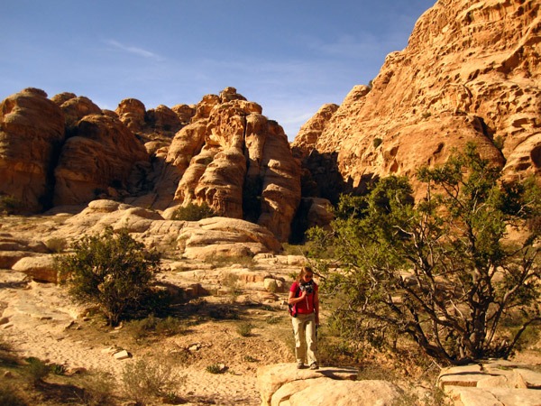 Nach einem sehr engen felsspalt öffnet sich der canyon und gibt den blick in ein wunderbares tal preis, bedouinen laden uns zum tee ein, nach ner weile laufen wir das tal entlang
