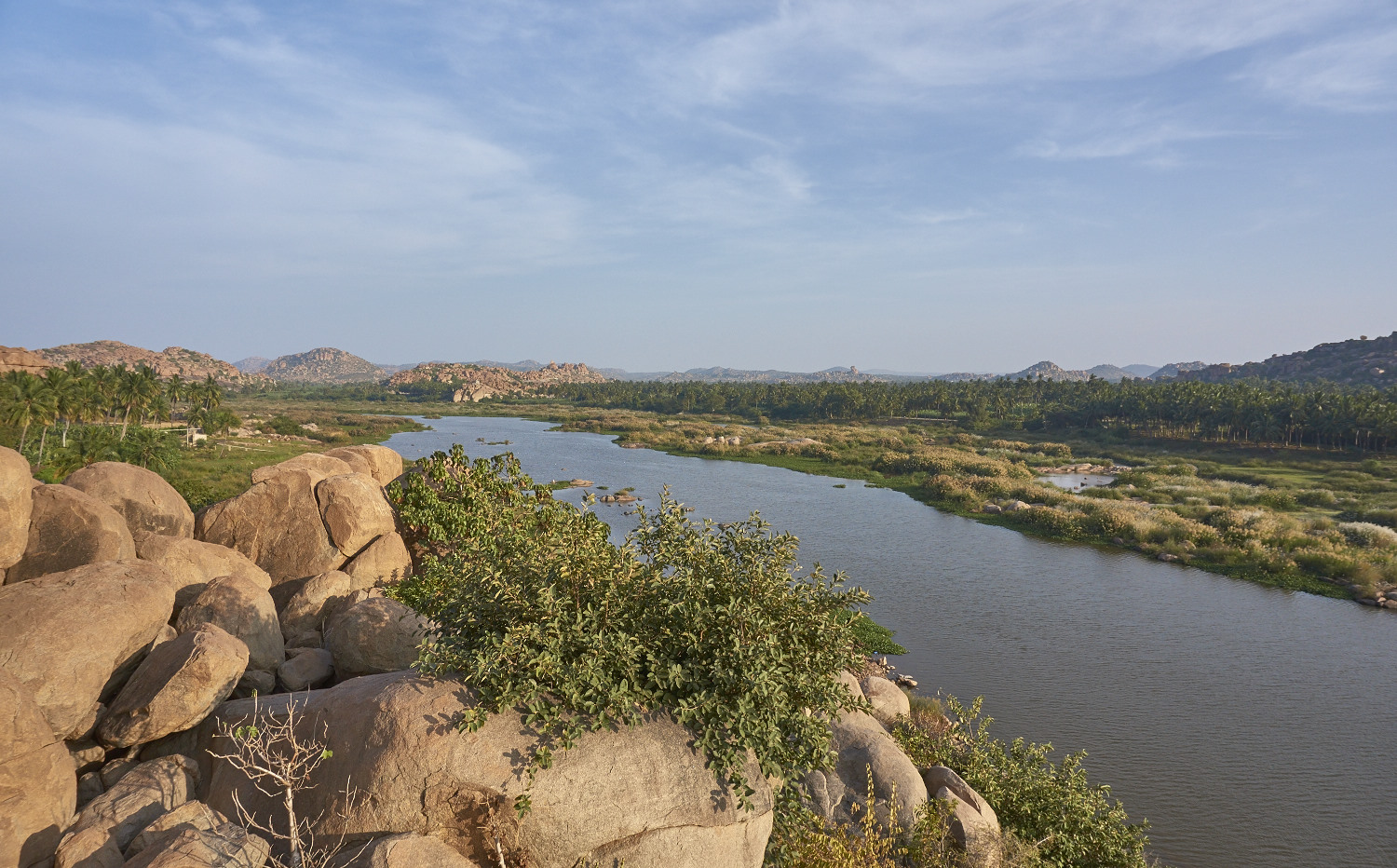 Last time I’ve been here 9 month ago and stayed with Katja on the southern side of the river called Hampi Bazaar, a little busy village close to the temples, we explored the temples for one day and went away, that didn’t do justice to the otherworldly place! This time I wanted to see the other area north of the river called the island or Virupapur Gaddi, it’s more tranquil and close to some very fine bouldering sites with not that much temple tourism.