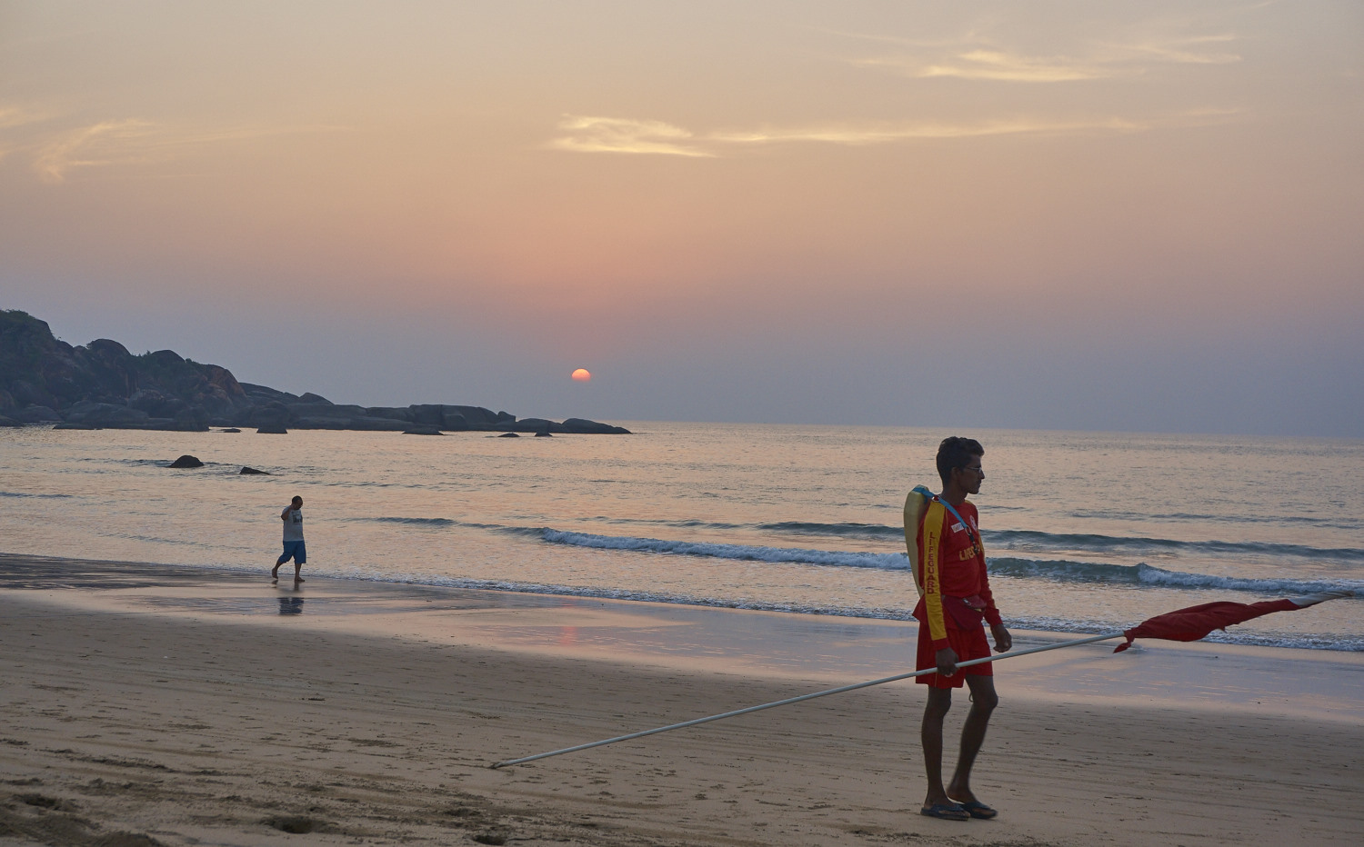 The beach itself is not crowded, just a few restaurants and shacks, all closing early, going with the rhythm of nature, when the sun comes up again you’ll see people jogging, meditating or doing yoga, just a perfect spot for relaxing. On each side you’ll find rocks to explore and the northern end has a river mouth from where you can see the fisher boots moving in early in the morning – not that we got up that early but I knew from my previous stay as Katja was helping the fisher men to get their boat from the ocean into the river beating the everlasting current.