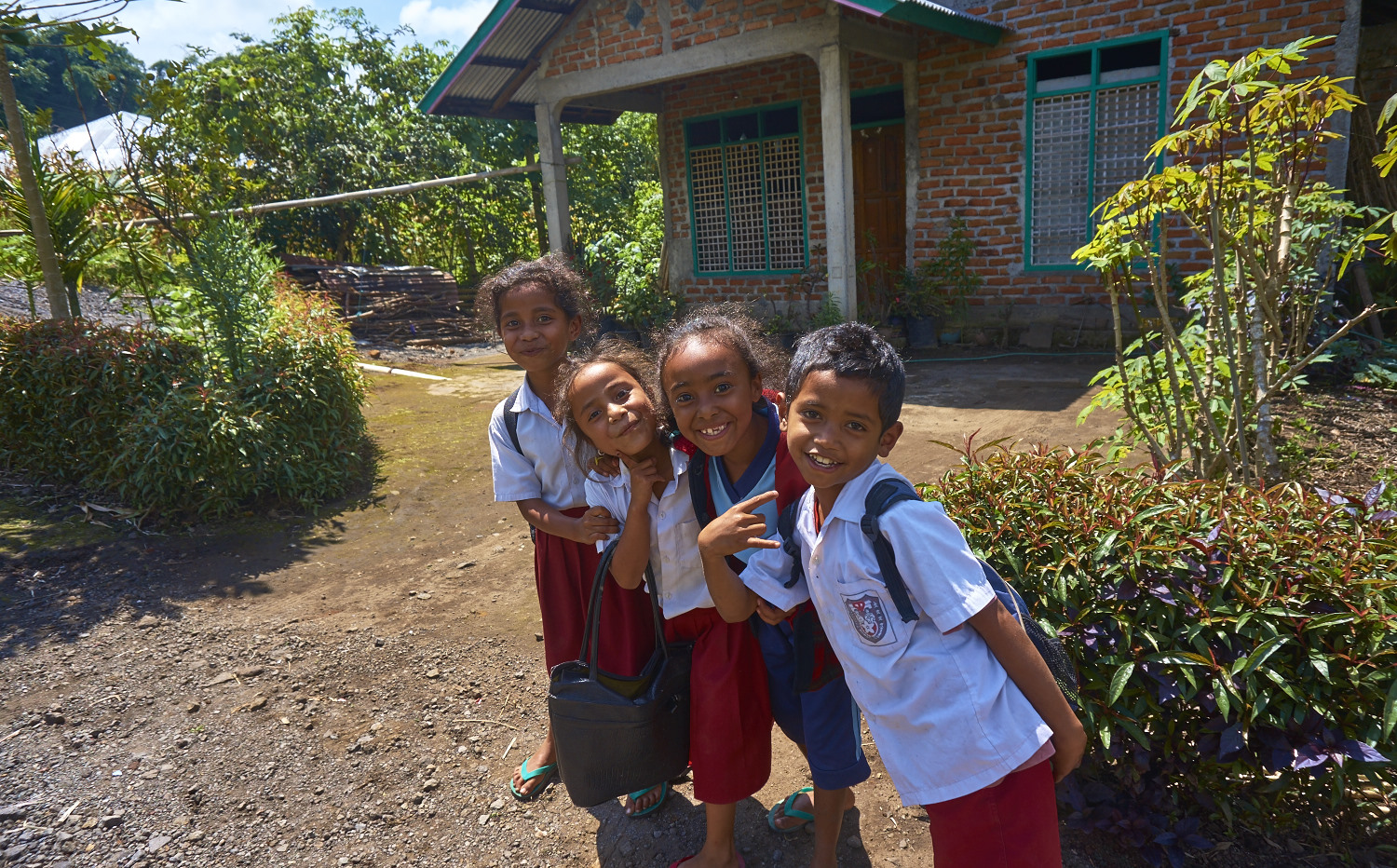 On a small road close to Gunung Inerie I drove past small villages, was greeted by the friendly locals and school kids gathered round my bike when I made a break, begging for pictures.