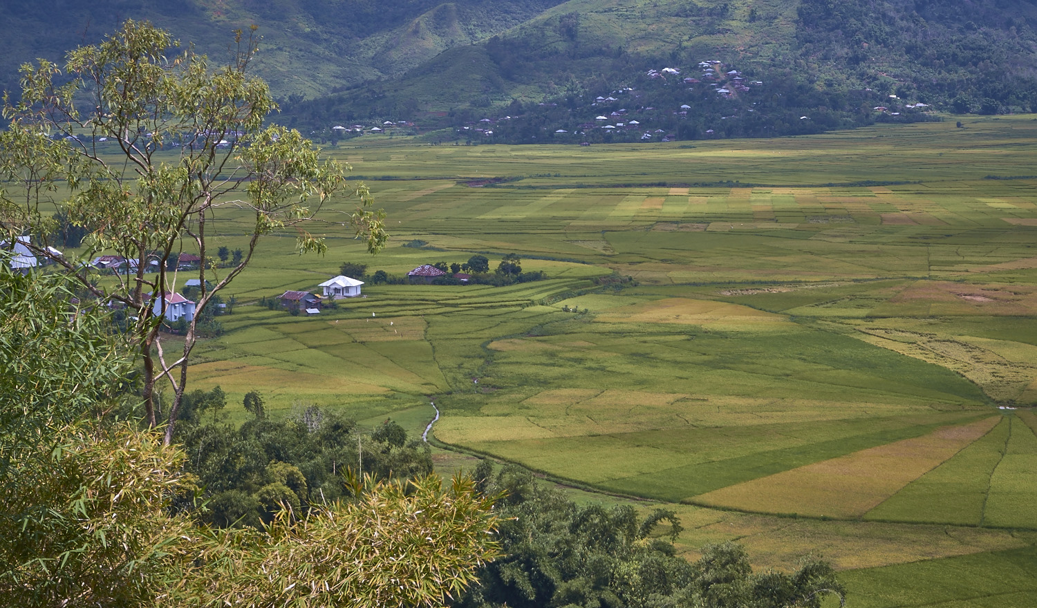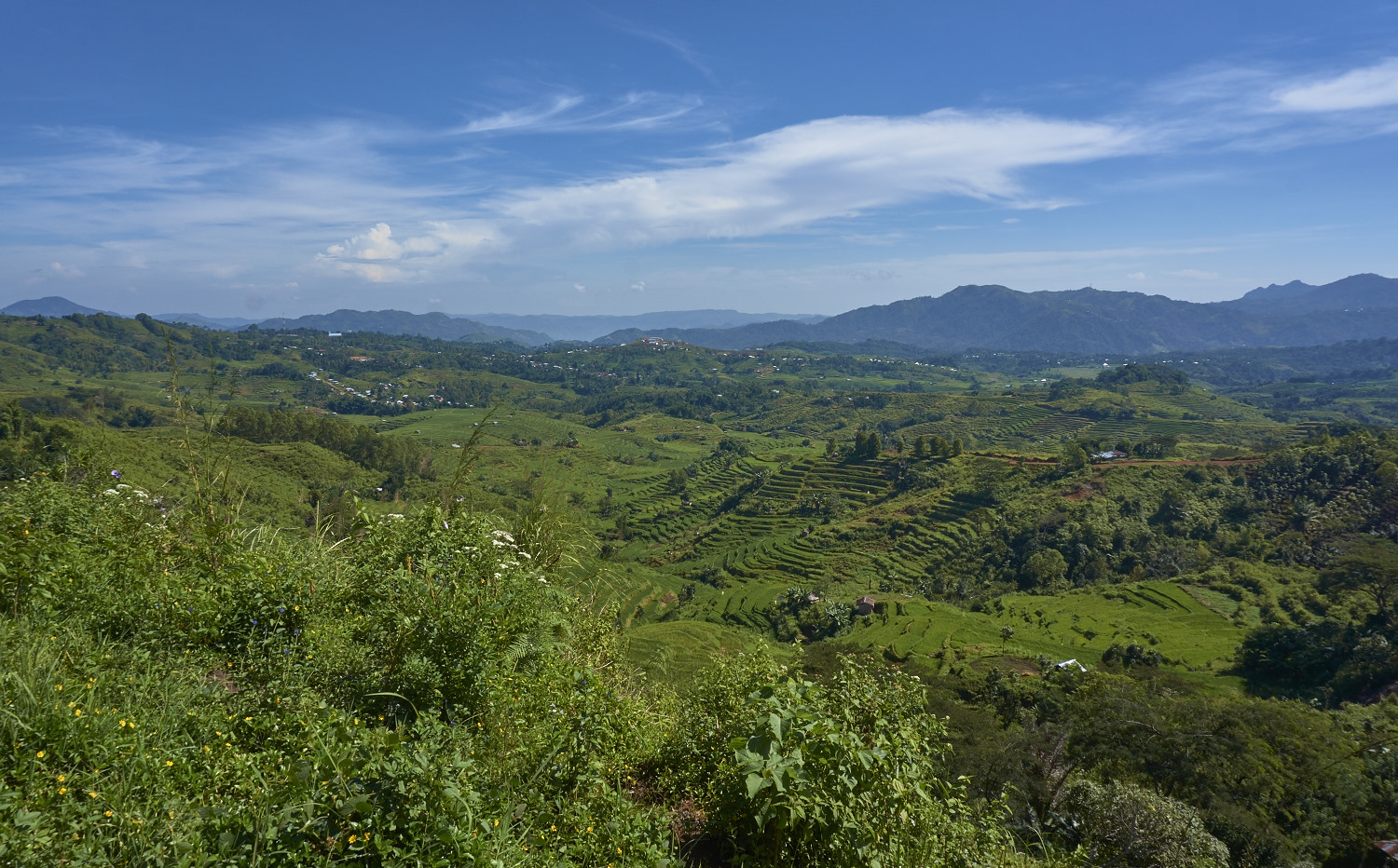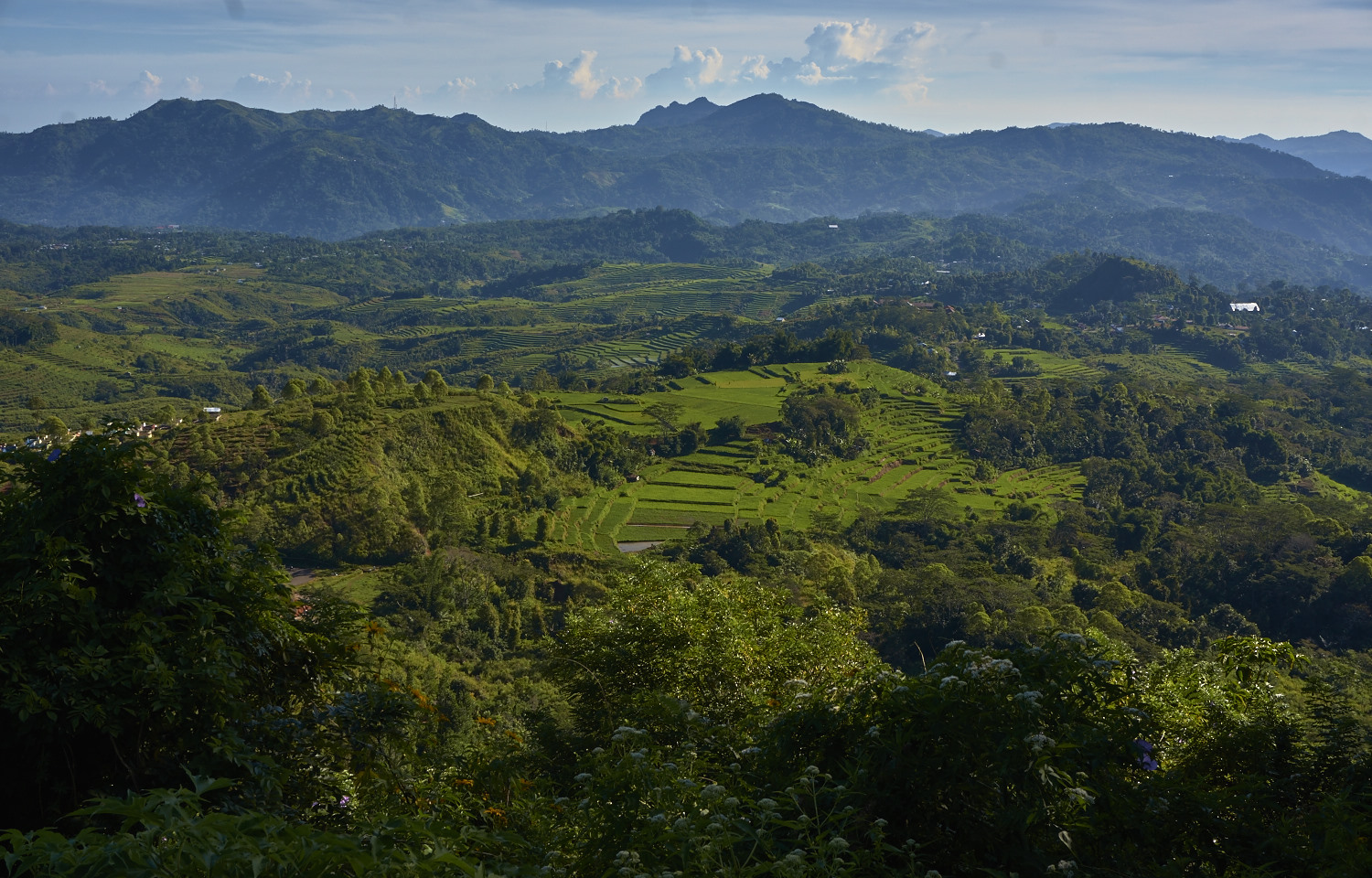 All around the city rice fields are cut in the mountain slopes, some even in the shape of a spider web.