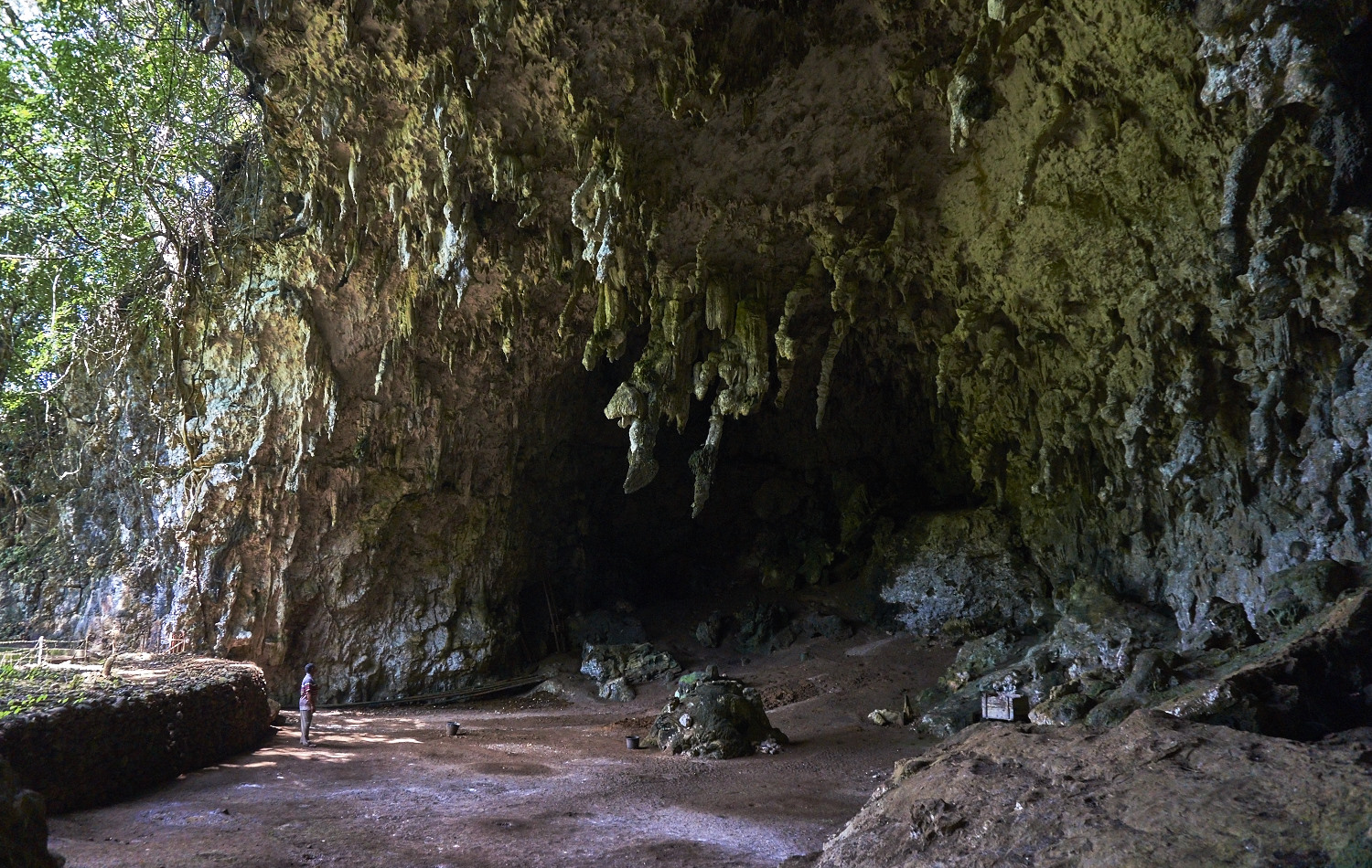 The cave in Liang Bua literally meaning cool cave is pretty huge but not very deep and stalactites in different sizes and shapes hanging from the ceiling. The remains of the Flores Hobbit have been found here in 2003. Further reads: https://en.wikipedia.org/wiki/Homo_floresiensis .