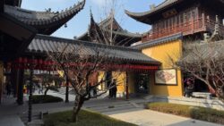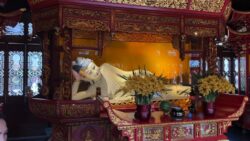 My final week in China has started and I still have a couple of things on my list. I want to visit the Jade Buddha temple a tranquil retreat in the heart of Shanghai, established in 1882 during the reign of Emperor Guangxu of the Qing Dynasty. It stands as one of the city’s most significant spiritual sites. The temple is divided into two sections: the front courtyard, featuring traditional Song Dynasty-style architecture with prominent halls like the Hall of Heavenly Kings and the Mahavira Hall, and the rear courtyard, home to the multifunctional building. The original temple has been burned to the ground and was rebuild at another site, thus its name. It’s known for its two jade Buddha statues, the temple’s origins trace back to Master Huigen of Mount Putuo, who brought five such statues from Myanmar but left two in Shanghai. The temple remains an active place of devotion, particularly on the first and fifteenth days of the lunar month. A major event is the offering of the first incense on Lunar New Year’s Day, when worshippers gather outside the gates on New Year’s Eve, hoping to secure blessings for the year ahead.