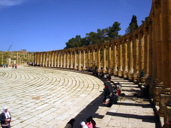 Nachdem man das südtor durchquert hat und an der galerie vorbei läuft, erscheinen bereits die säulen des gewaltigen forums, das ungewöhlnlich oval gestaltet wurde (90m lang und 80m an der breitesten stelle)