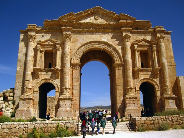 das gebiet der alten stadt wird ganz spektakulär durch den 13m hohen triumphbogen, der 129 n. chr. zu ehren von imperator hadrian’s besuch errichtet wurde, betreten.