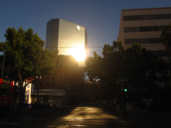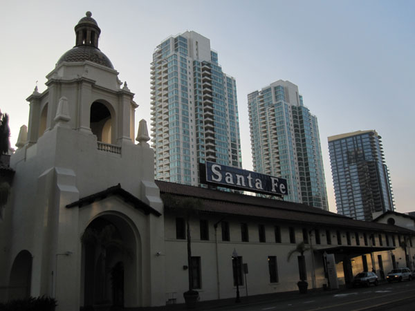 ich bin von l.a. mit dem amtrack zug angereist, da präsentiert sich die sante fe station und die hochhäuser im hintergrund