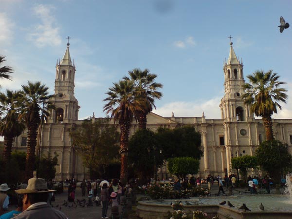 nach ner schicken busfahrt über hohe pässe, vorbei an schneebedeckten bergen lande ich in arequipa, peru, als beiname die weisse stadt weil viele gebäude aus weissem vulkangestein gemeisselt wurden. der unterschied zu bolivien ist doch spürbar, es ist sauberer und die leute sind offener und zugänglicher…