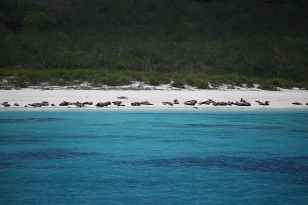 neuer tag neue insel neuer strand, herrlich! diesmal espanola, eine der ältesten inseln, deswegen flach, zufluchtsort von albatrossen, die haben hier in der tat ihre landebahn – sie rennen wirklich ein paar meeter bevor sie starten, beim landen eben auch 😉 begrüßt am suarez point werden wir von seelöwen im wasser und an land, die versperren erstmal den weg witziges …